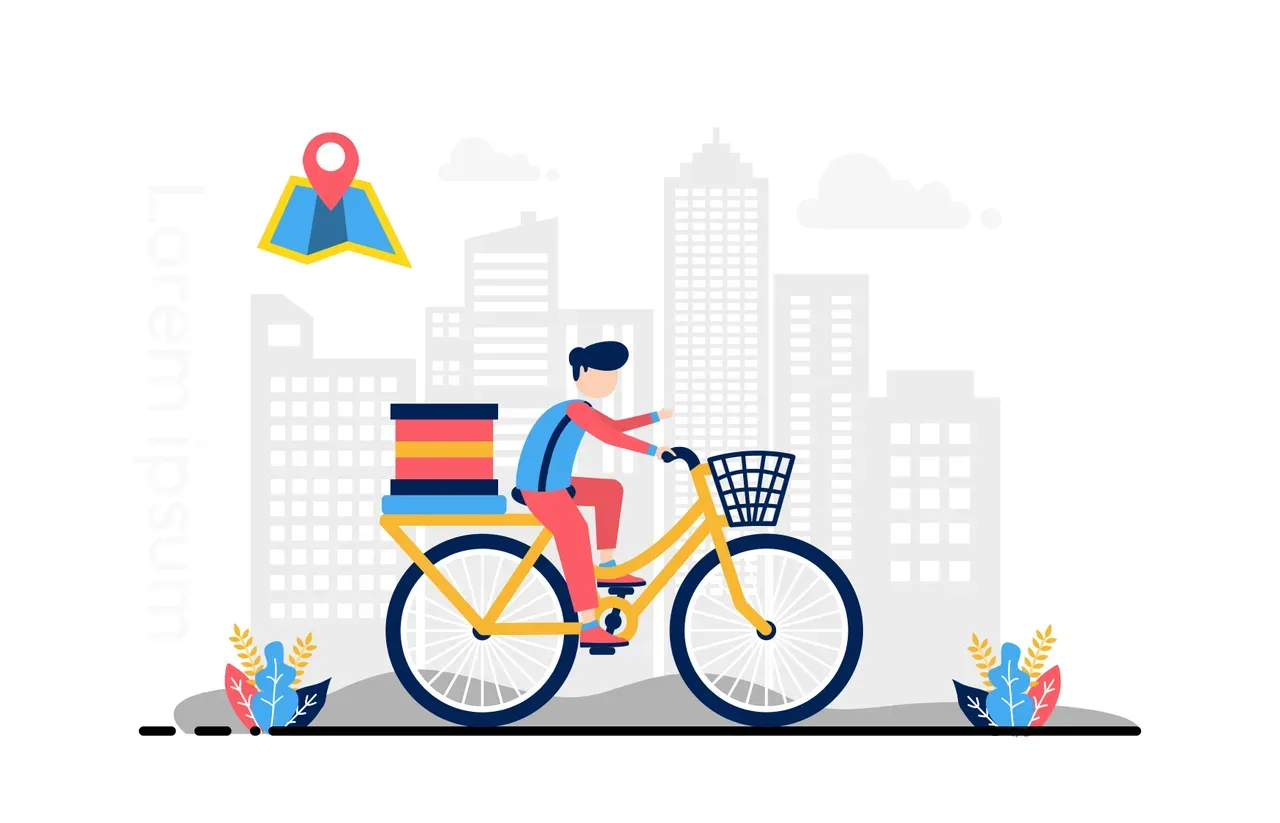 Flat illustration courier man with city background