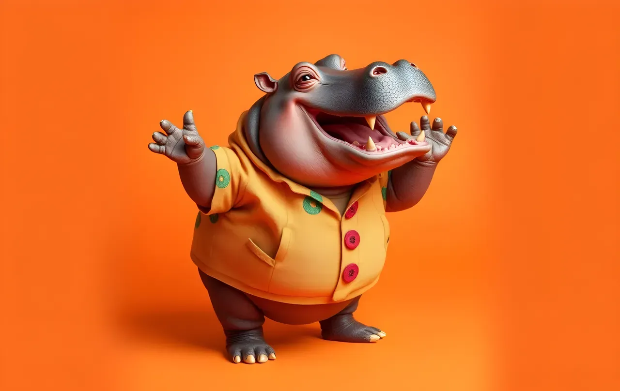 Ai genereted conceptual surrealistic funny fashion design colorful background outfit orange color bright animal joy hippopotamus happy vibrant fine art concept joyful digital art relax artwork