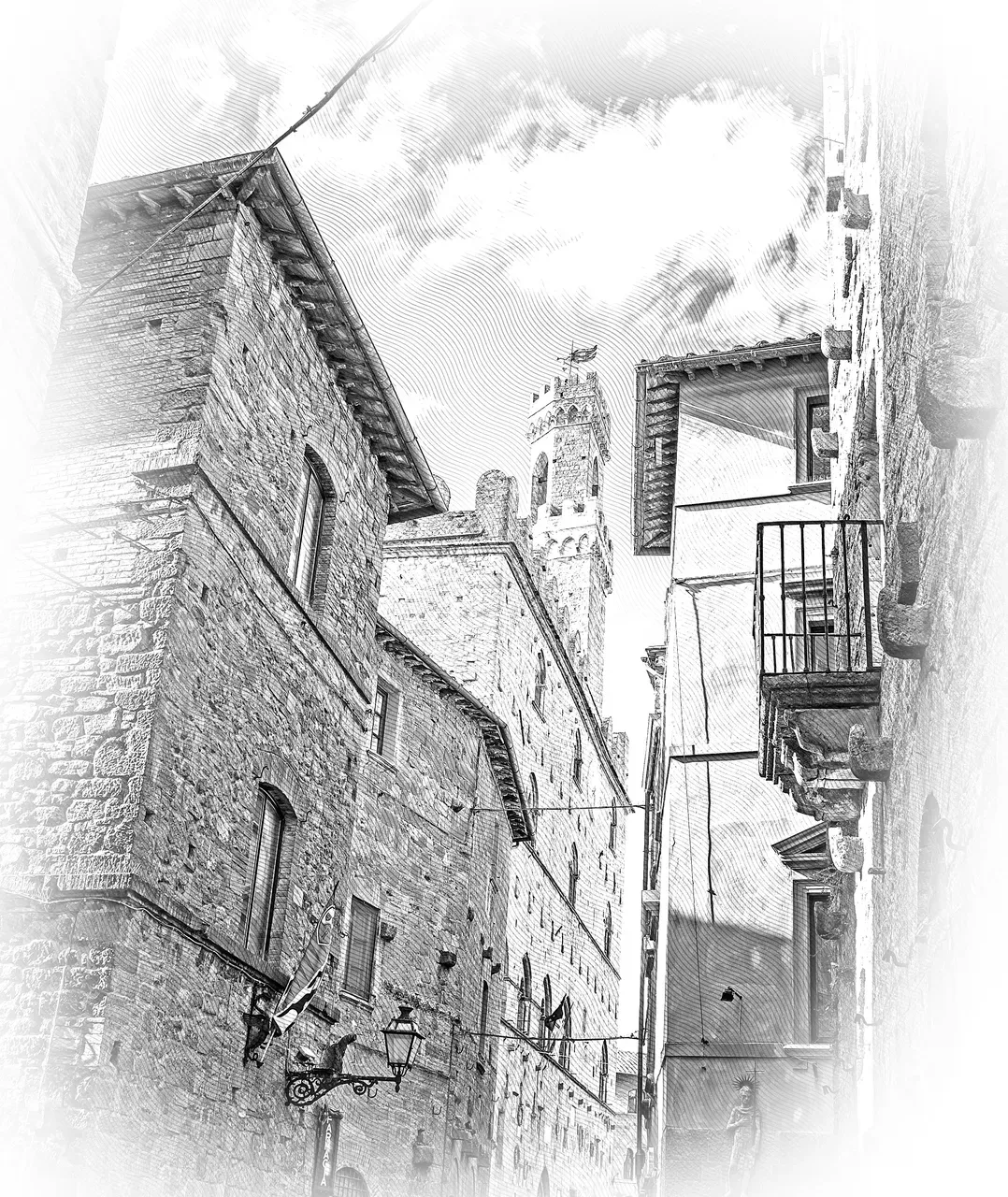 Beautiful village of Volterra in Tuscany - travel illustration
