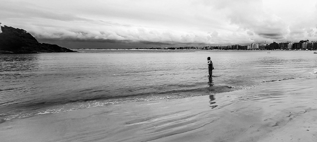 beach beach bay day full length lifeguard lifeguard hut outdoors sand sea silhouette summer sunset sunset air strip two people water — in Cabo Frio, Brazil
