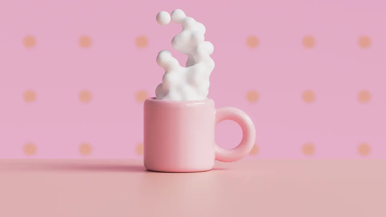 Morning pink cup of coffee. 3d render, 3d illustration.