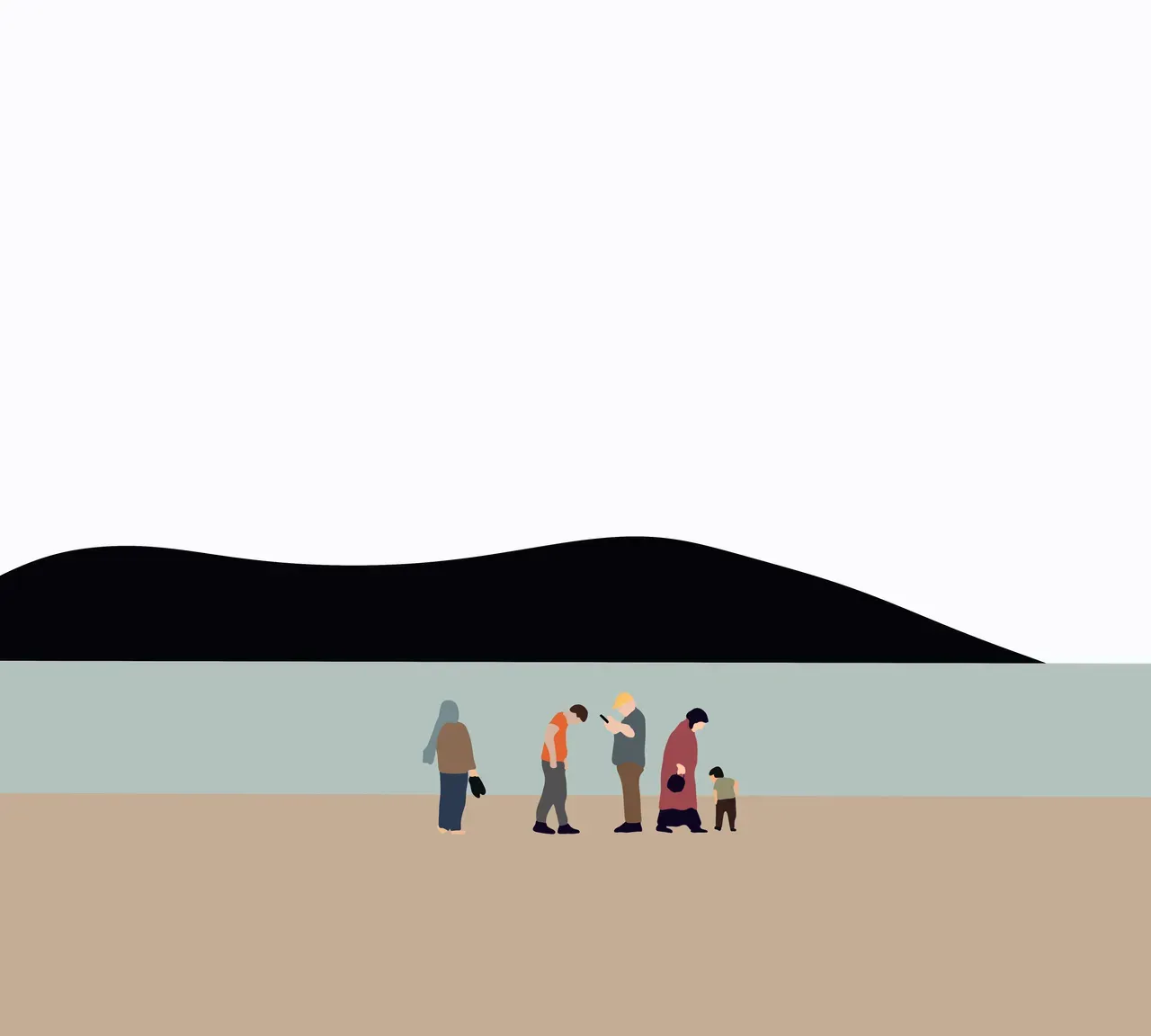 Young men and women, boys and girls walking on the beach. People Group enjoying Summer Vacation.