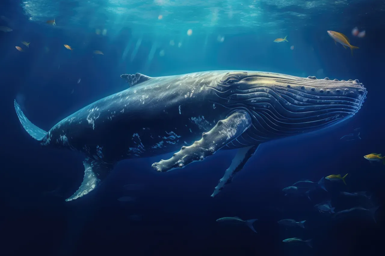 A Humpback Whale Plays Near the Surface in Blue Water, AI Generated