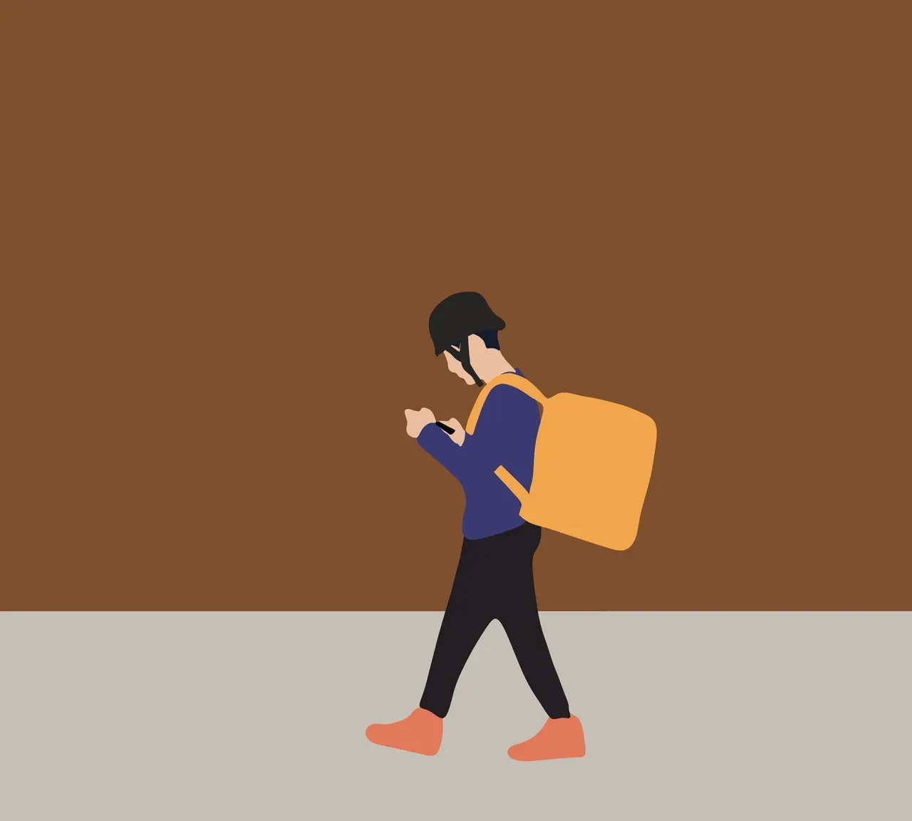 delivering service delivery person smart phone telephone men shipping city street outdoor pursuit