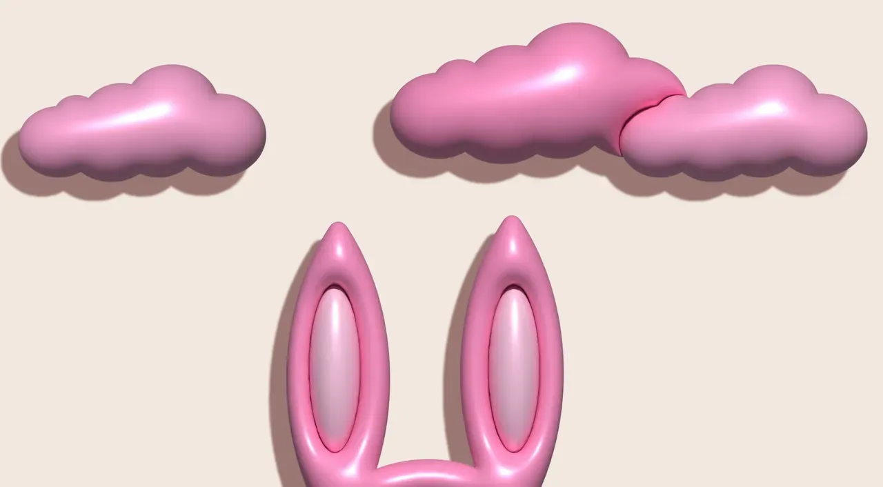 Rabbit ears and pink clouds on a beige background, 3D rendering illustration