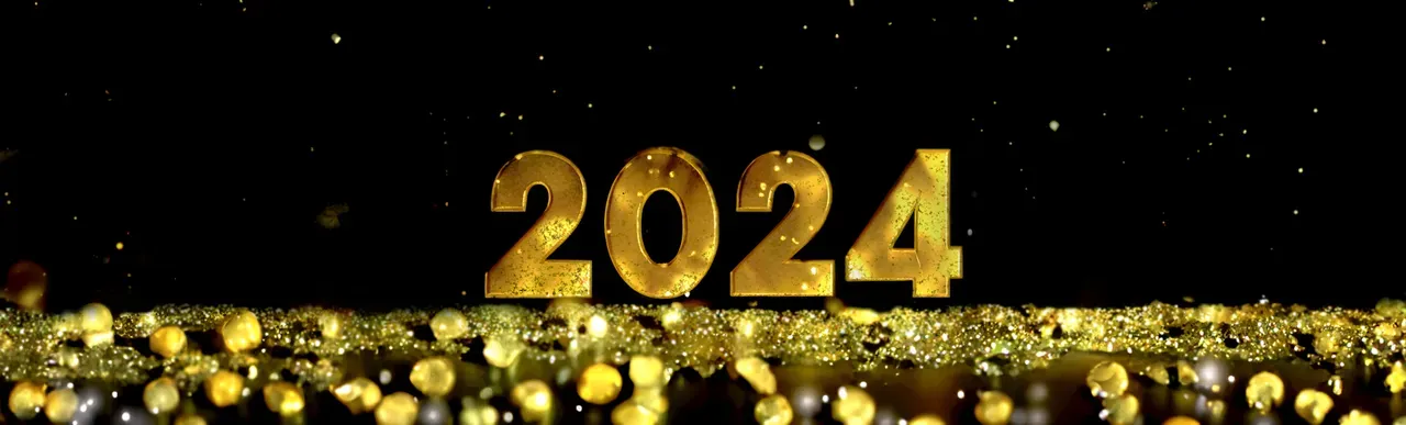 2024 writting in golden figures in the night on a illuminated ground by blur lights