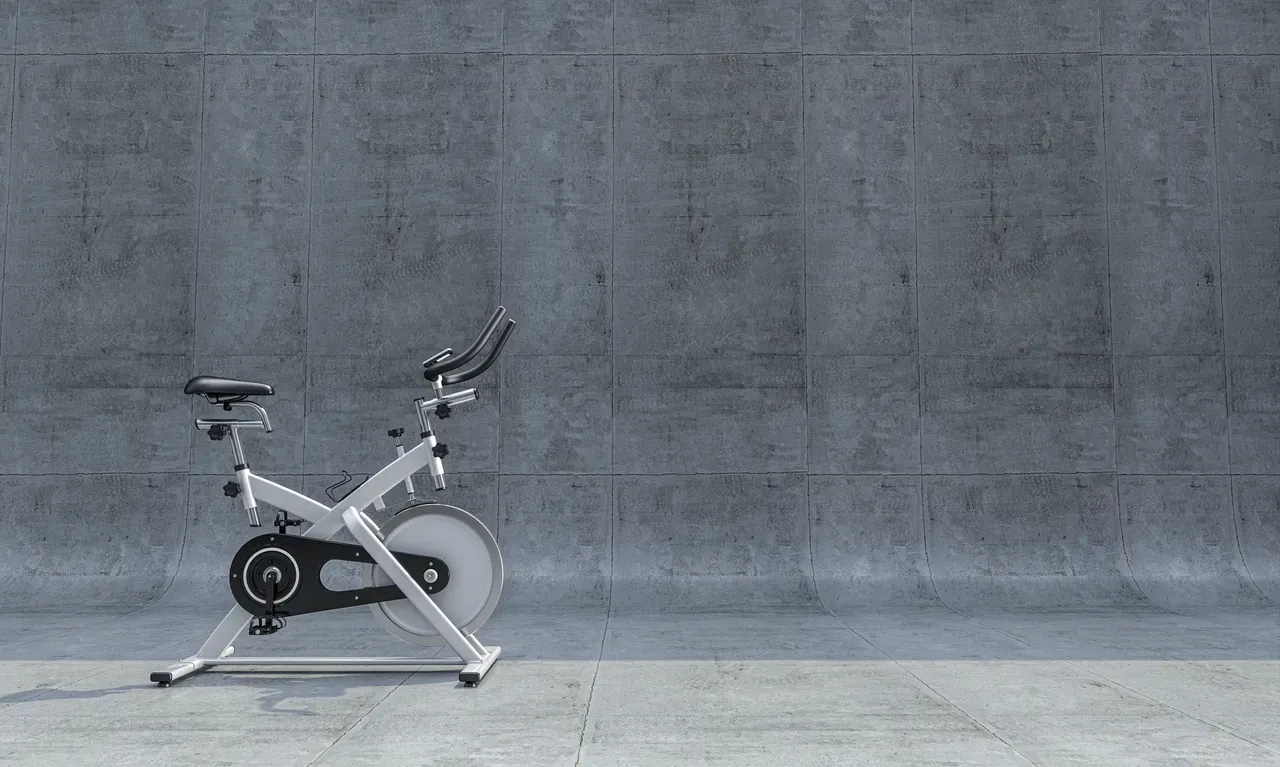 stationary bicycle exercise equipment health bike nobody modern concrete spin background 3d rendering render gymnasium room lifestyle healthy pedal cardio workout exercise bike activity training machine trainer indoors leisure illustration 3d fitness gym sport