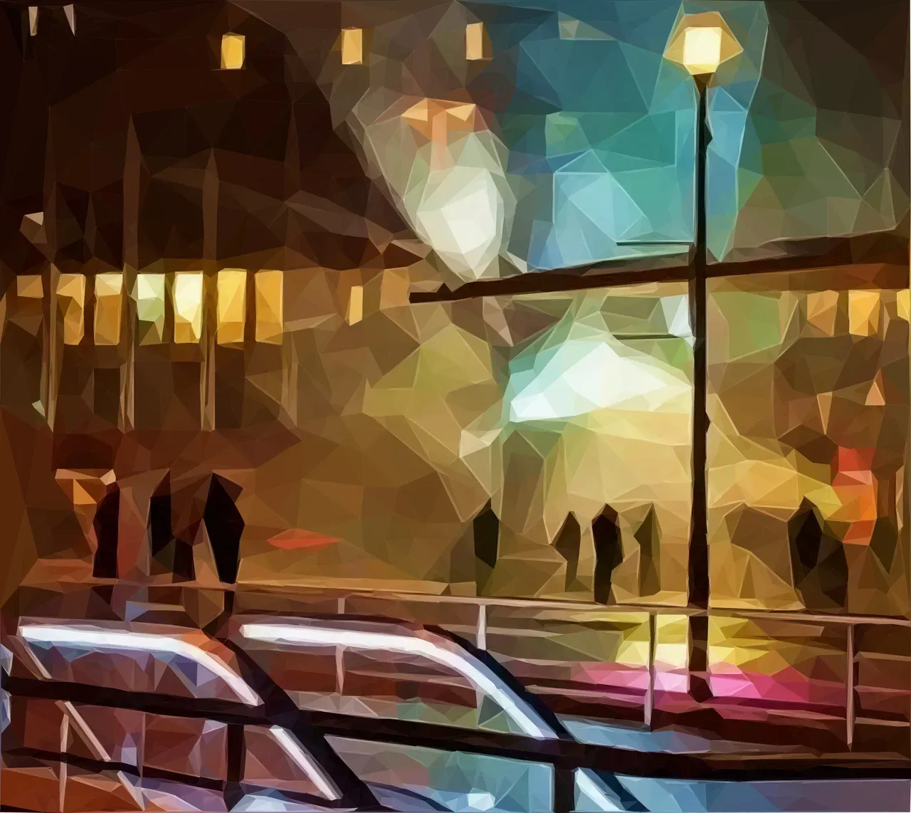 Lights at Podsamer Platz. In foreground is an escalator to the underground station. Low Poly Art.