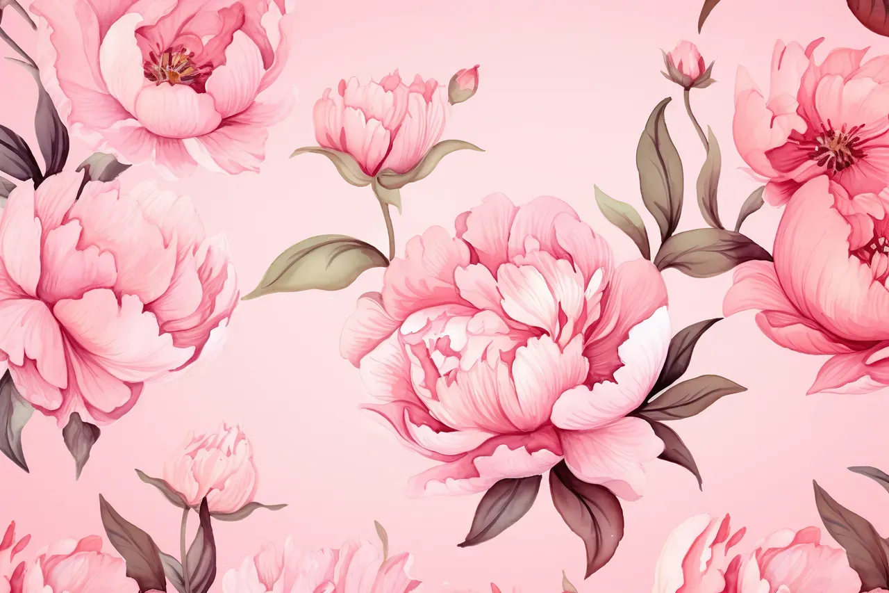 watercolor peony flowers on pink background.