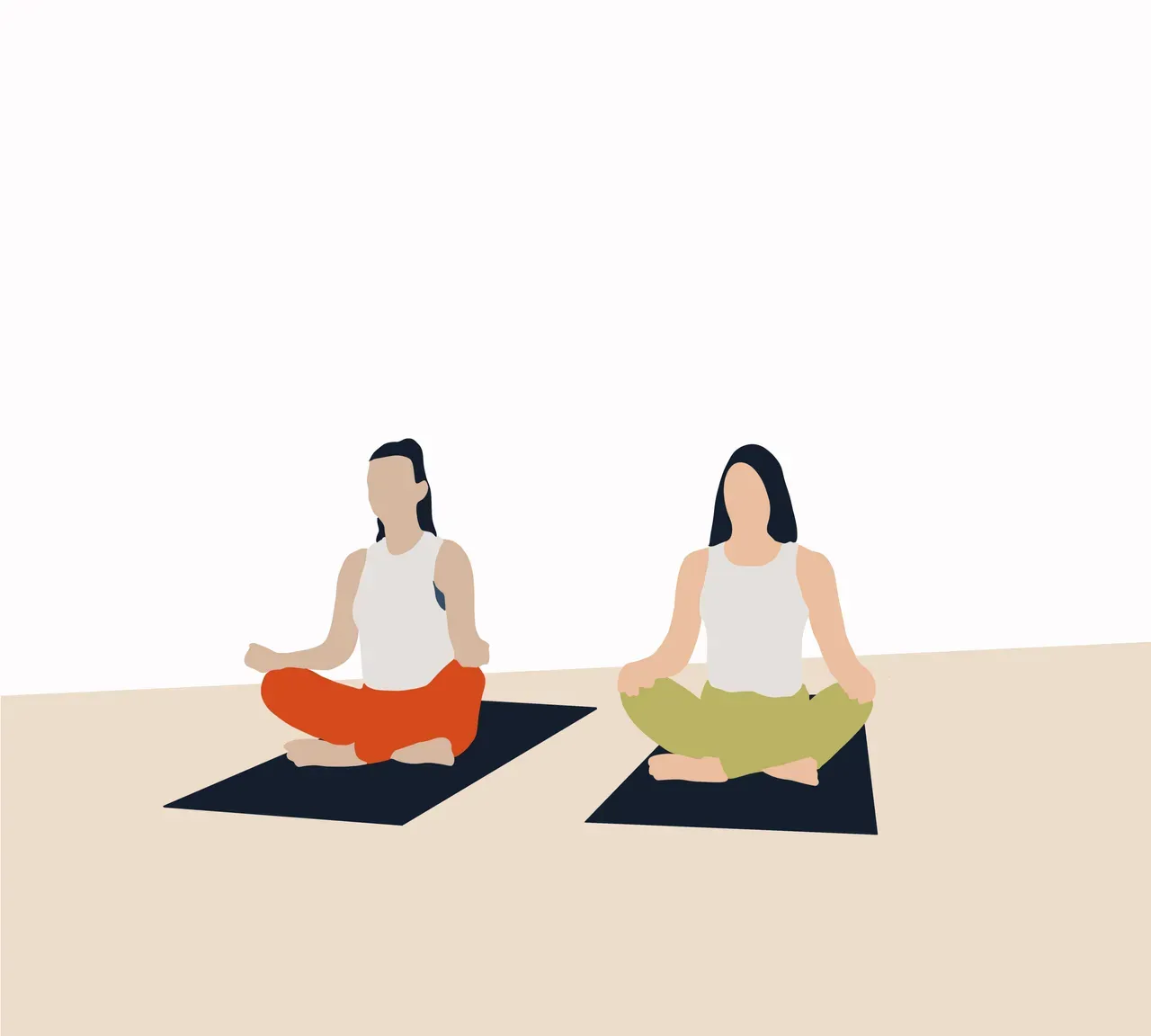 Young woman friend meditating on yoga mat. healthy lifestyle concept LGBT lesbian couple.