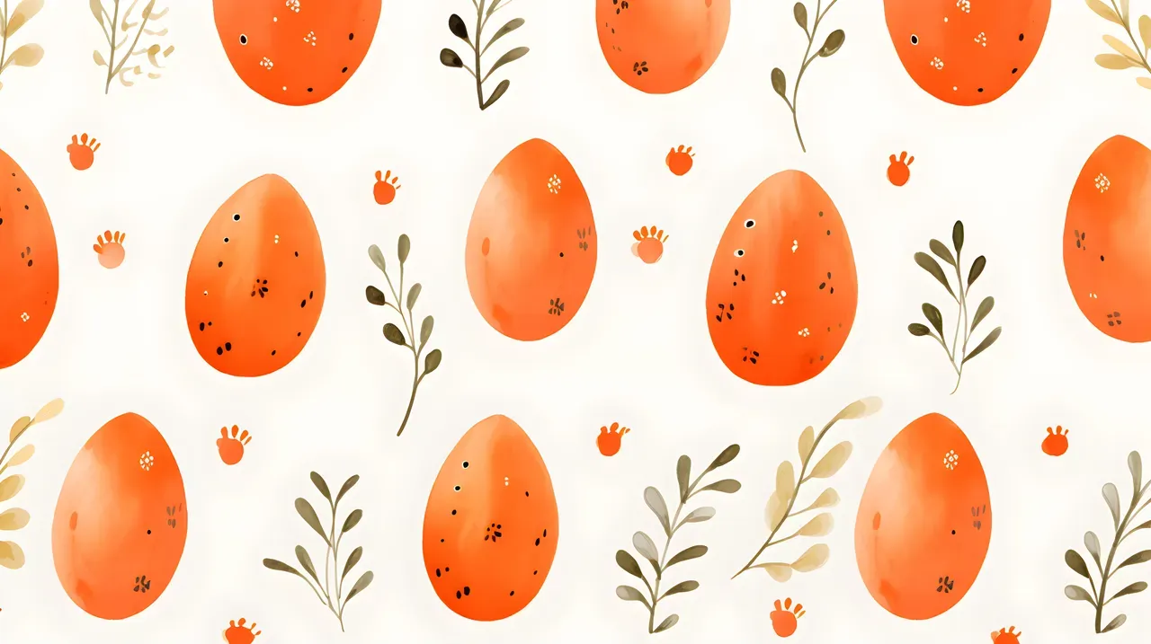 Seamless Background of painted Easter Eggs in orange Watercolors. Easter Wallpaper