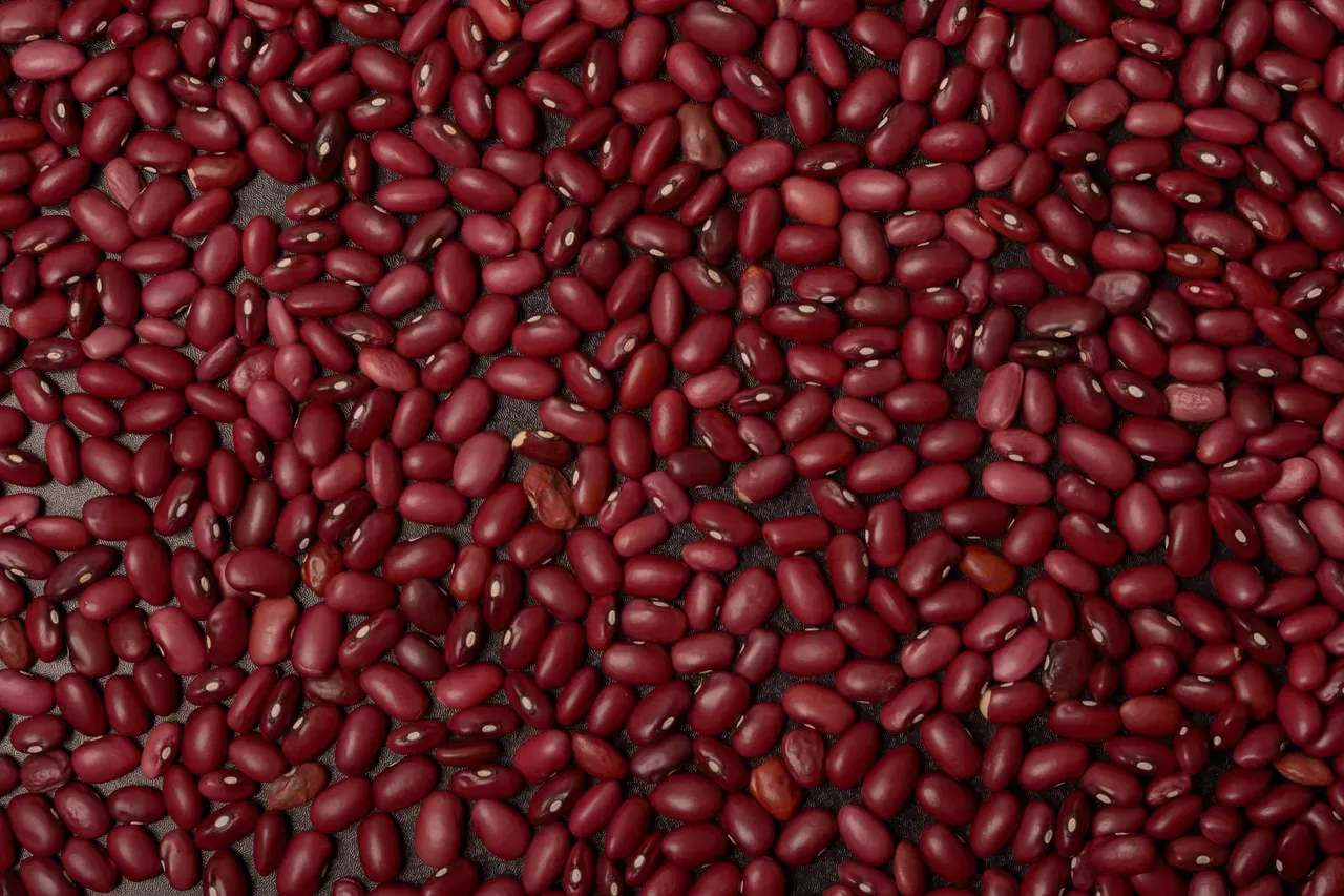 Red beans close up texture pattern background, top viewpoint
