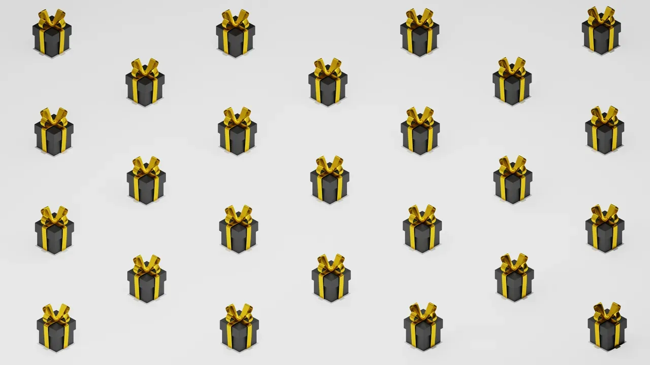 ribbon gold celebration anniversary present decoration decor christmas surprise new year illustration design pattern 3d render white background boxes gift black