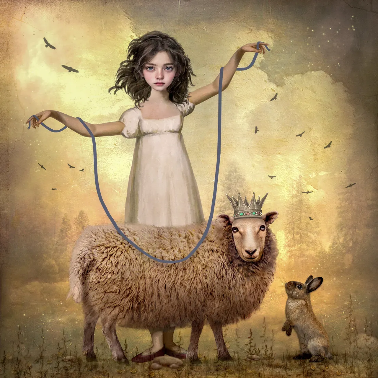 sheep rabbit little bo peep girl crown backgrounds digital art photo manipulation composite image