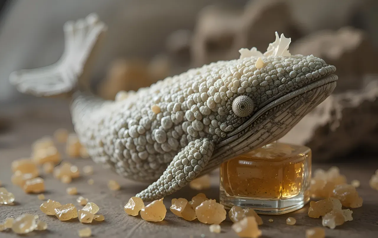 whale with whale ambra pieces. perfumery and lifestyle concept. Ai generated