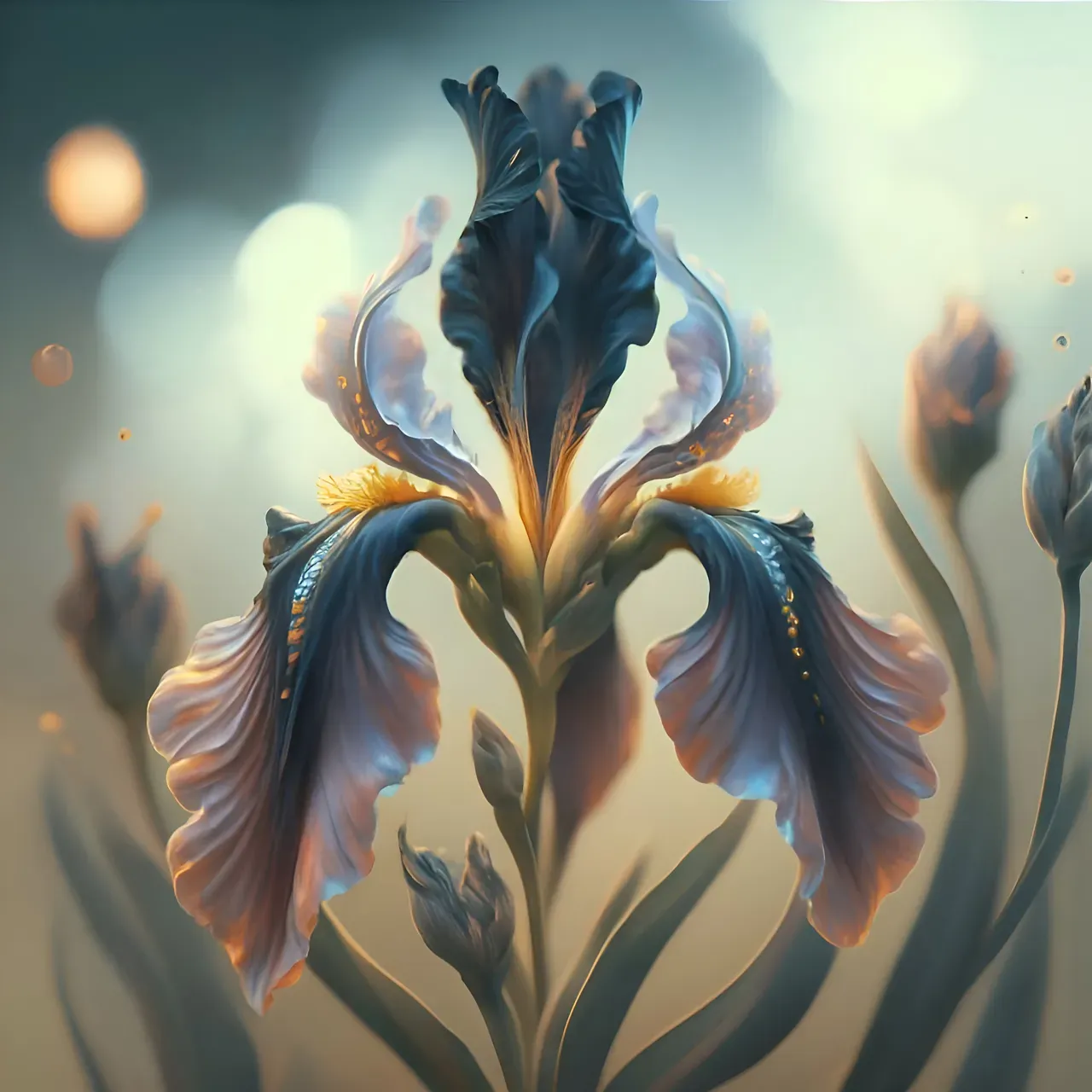 beautiful art pale blue iris flower against soft pale background. paint style. Ai