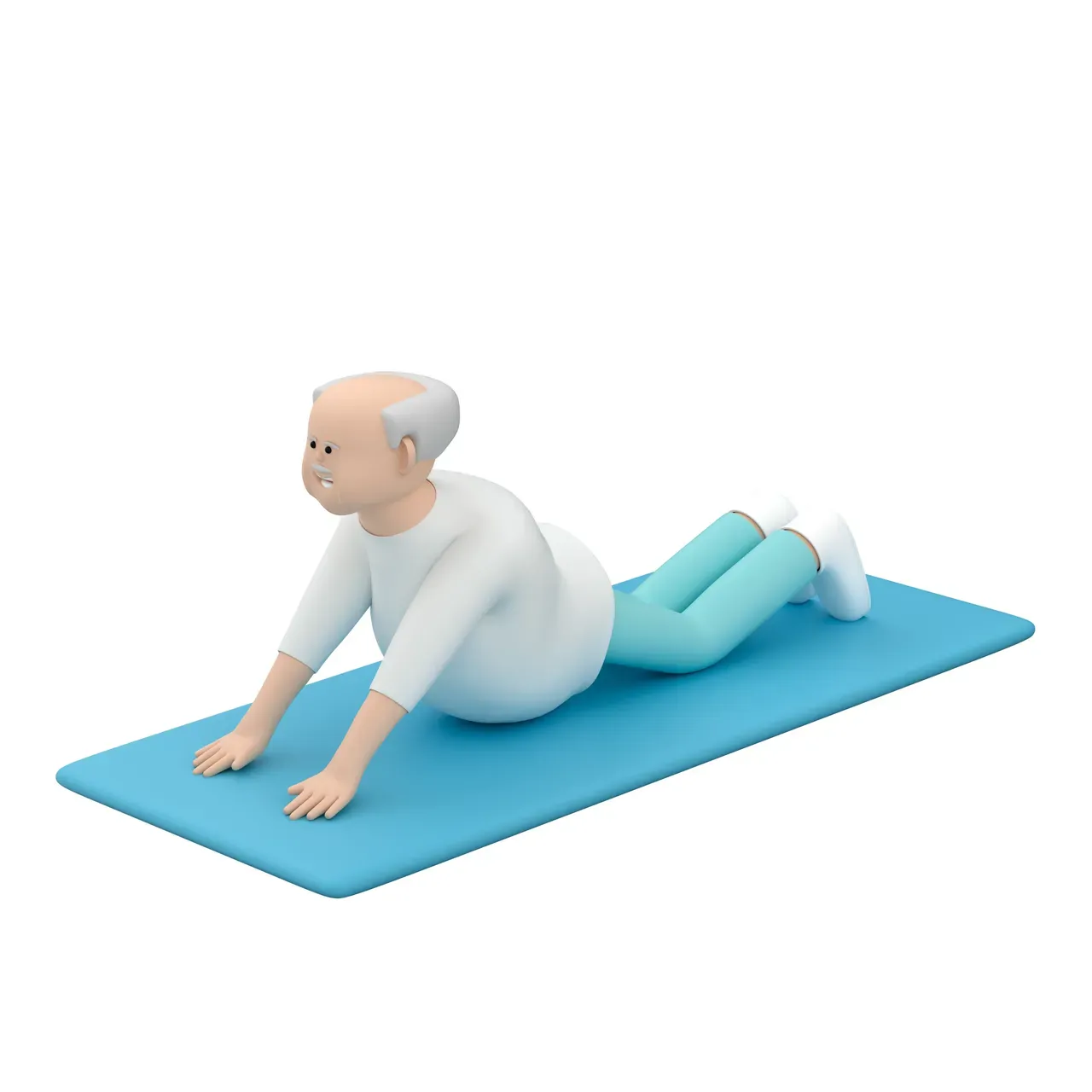 body gymnastics isolated mat old 3d illustration rehabilitation stretching healthy exercises male flexibility character practicing activity 3d render