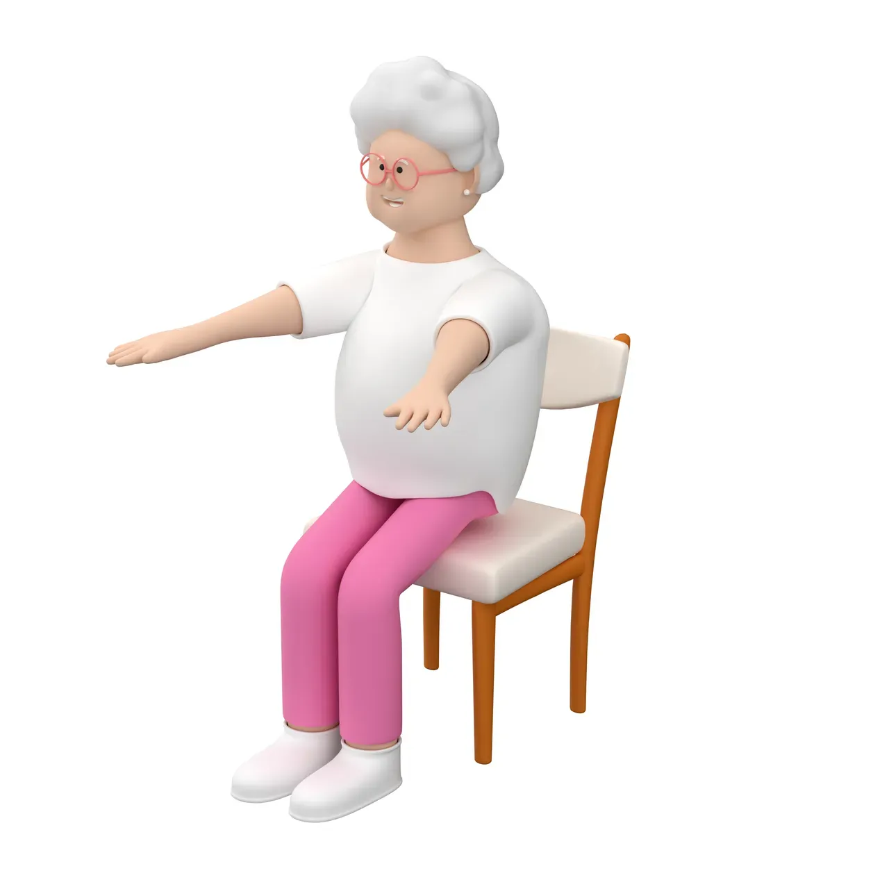 exercising using female 3d illustration woman sit ups healthy character chair person practicing senior elderly 3d render