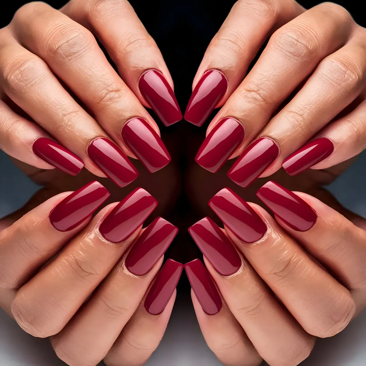 beautiful fashion burgundy stunning fashionable art mood stage style image background hand atmosphere conceptual art nail polish hue brand cosmetic beauty colors poster illustration deep marketing stylish generated imagination concept manikure Ai fingers digital art essence 3d render nails elegant branding red