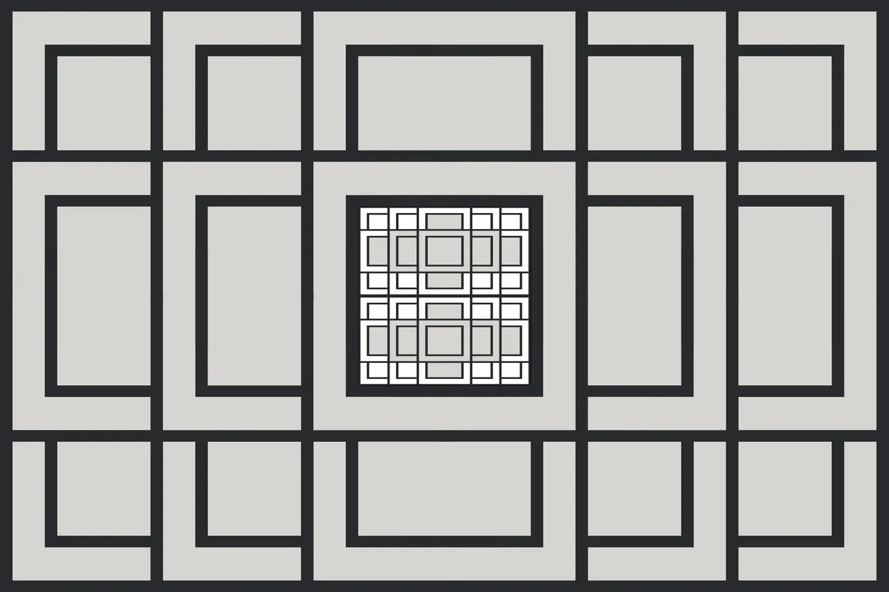 Minimalist abstract geometric pattern with interlocking black and gray rectangles