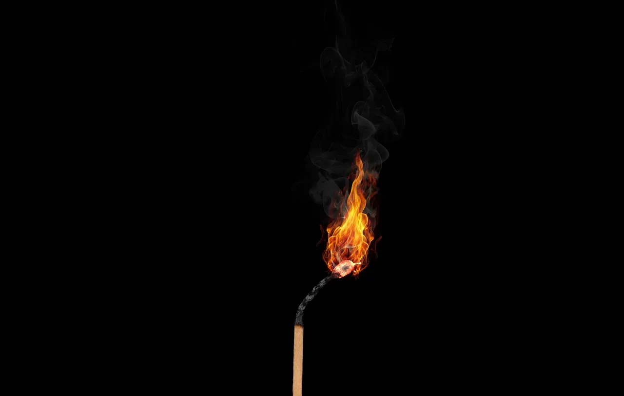 ignition smoke burn fire blue background isolated stick head strike blaze macro abstract ignite orange lit color flare bright dark object match single black matchstick yellow flaming wood closeup flame concept hot heat magic wooden power safety light burnt red