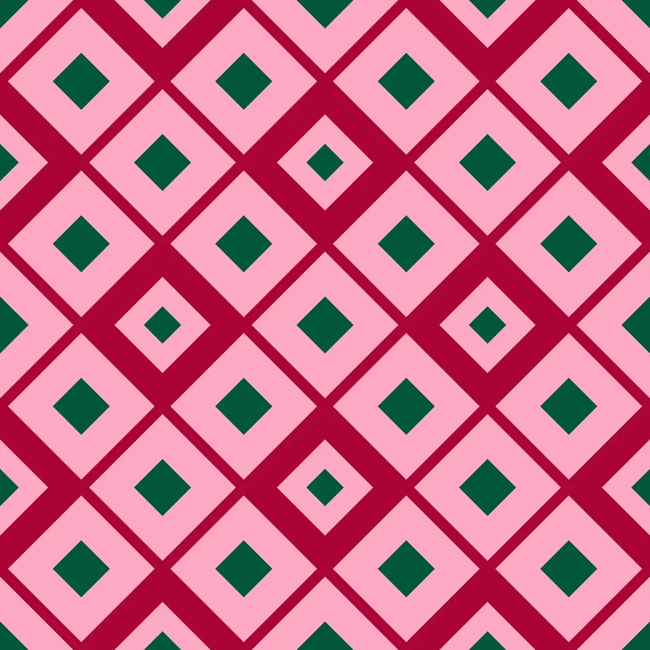 Seamless geometric pattern featuring bold pink and green diamond shapes with a retro inspired style