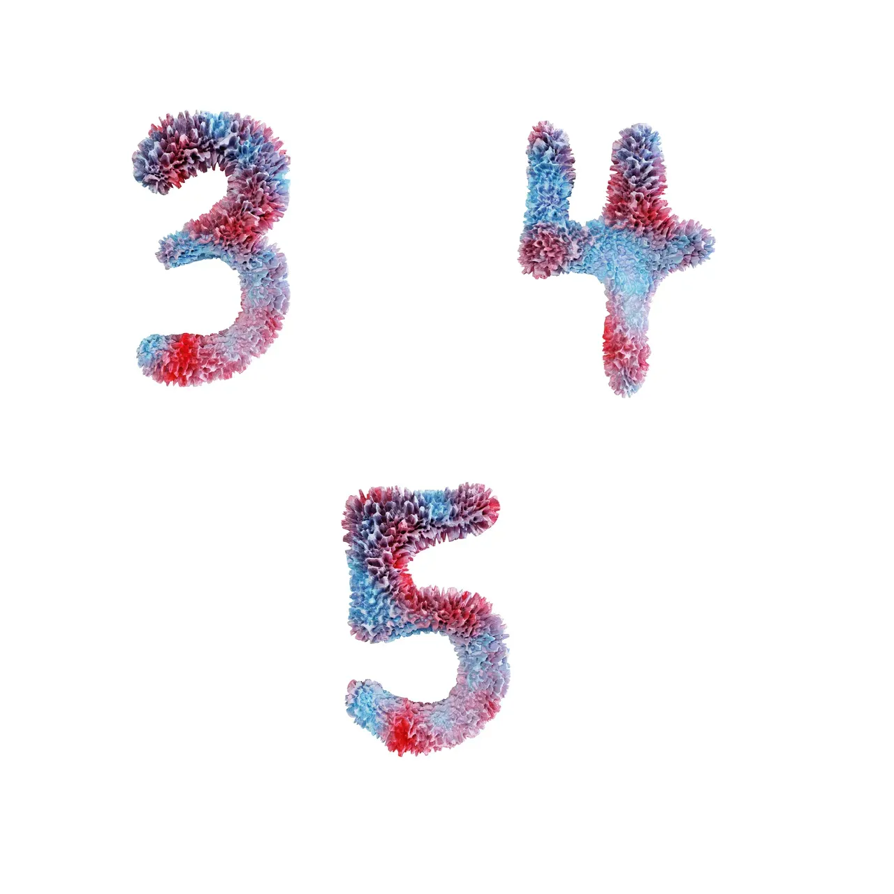 Coral reef capital letter alphabet - digits 3-5