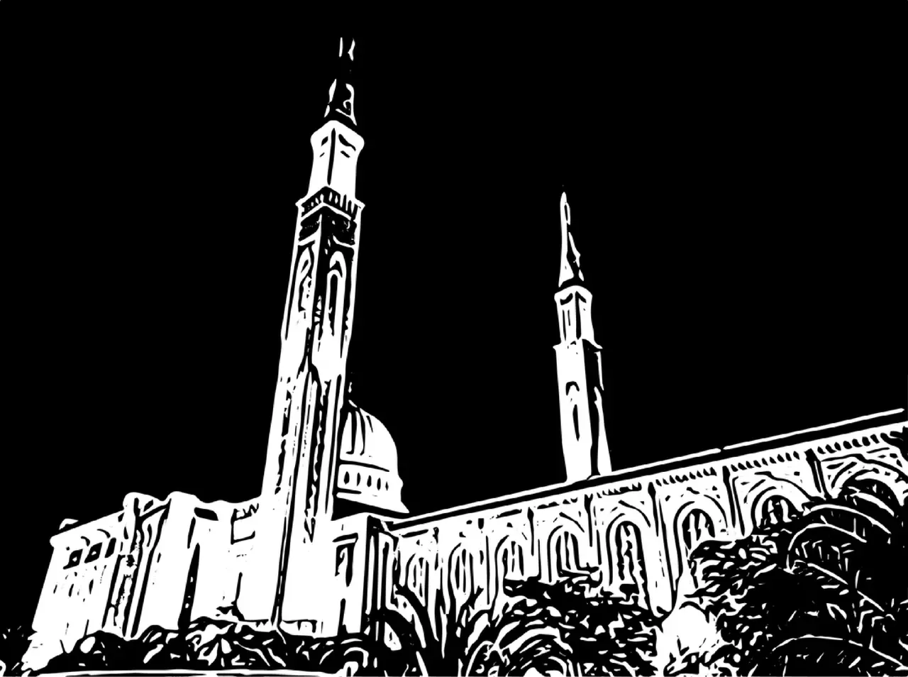 mosque religion islam spirituality praying building constantine algeria travel destinations tourism night black and white seamless pattern vector illustration