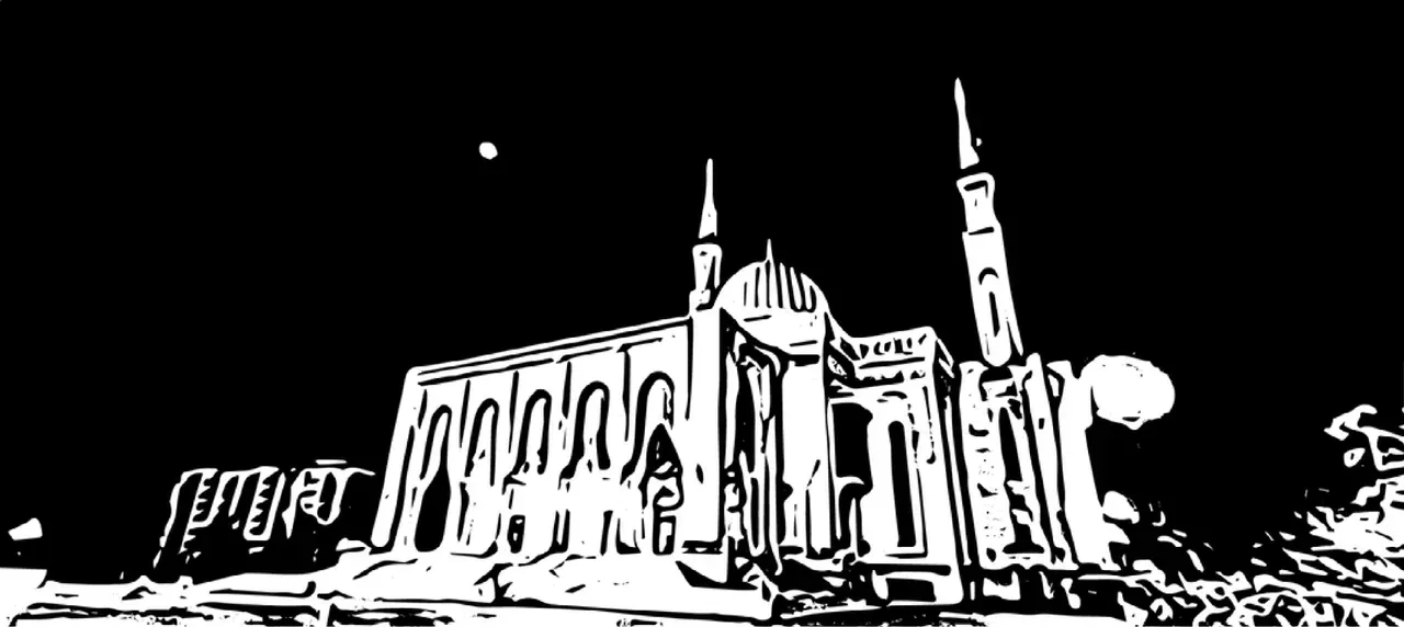 religion islam praying constantine algeria travel destinations tourism attraction night building exterior arab culture famous place sky haven seamless pattern vector illustration black and white mosque