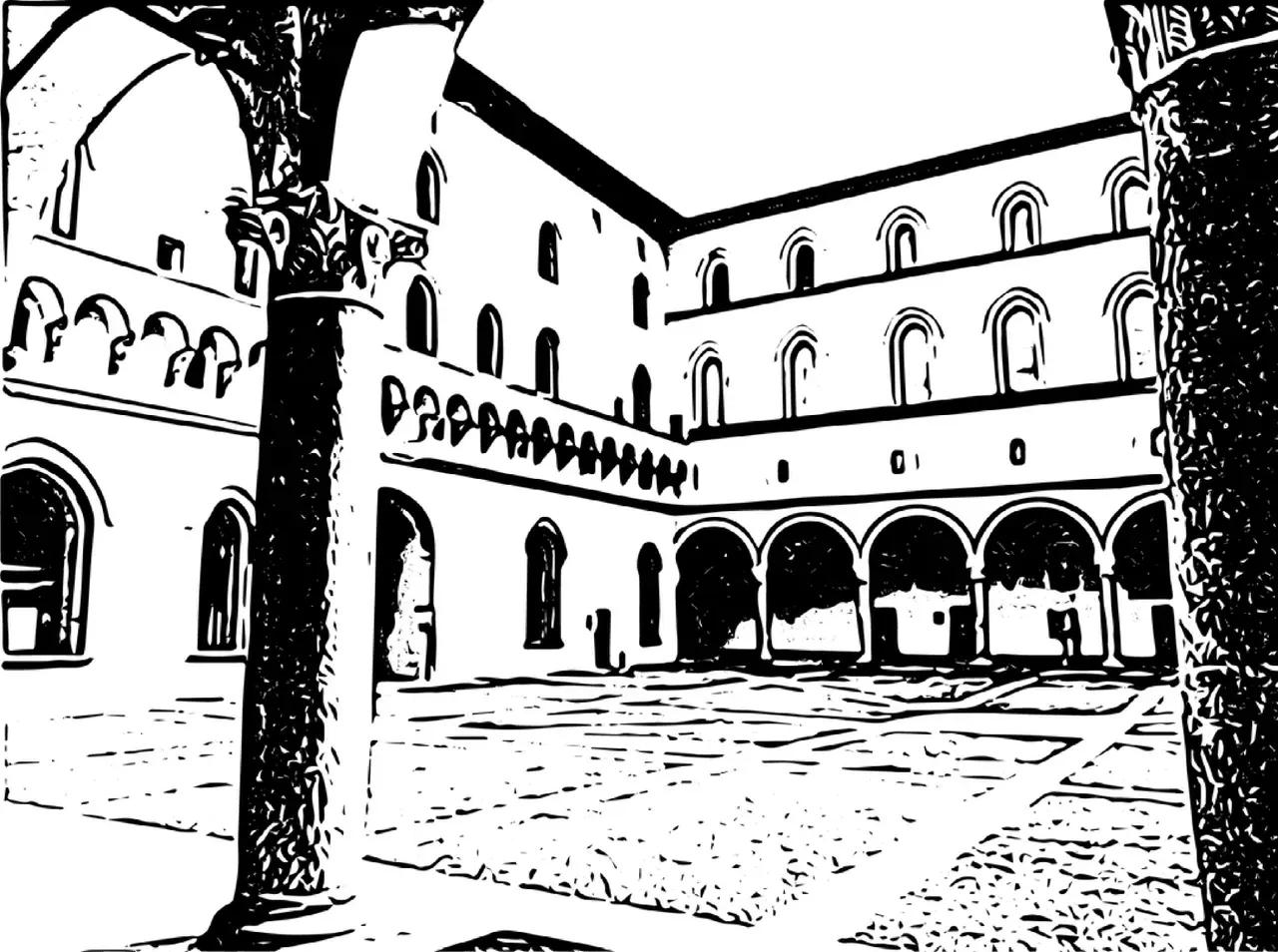 historic building italy milan old culture & religion travel destinations tourism tourist attraction rock - object castle black and white arcade seamless pattern vector illustration