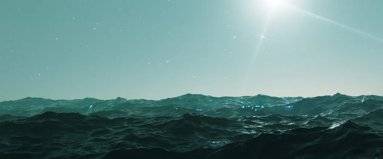 Raging ocean on a starry night. 3d render, 3d illustration.