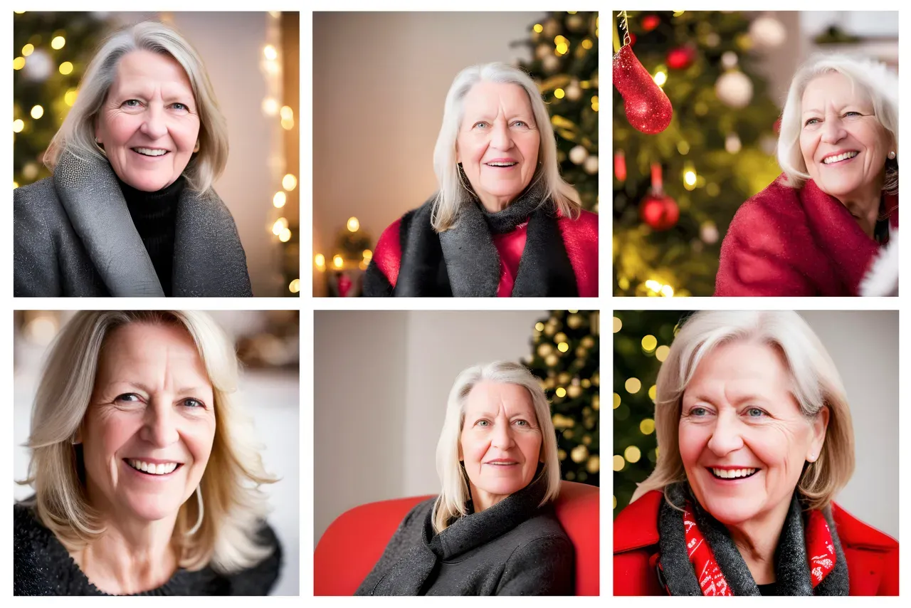 merry christmas scandinavian european bright christmas tree lady wrinkle cozy bokeh white looking collage background grandma room living lifestyle living room face xmas tree single person senior caucasian adult portrait elderly woman christmas holiday female december celebration old older aged new year smile home winter age grandmother alone casual beautiful happy mature gift