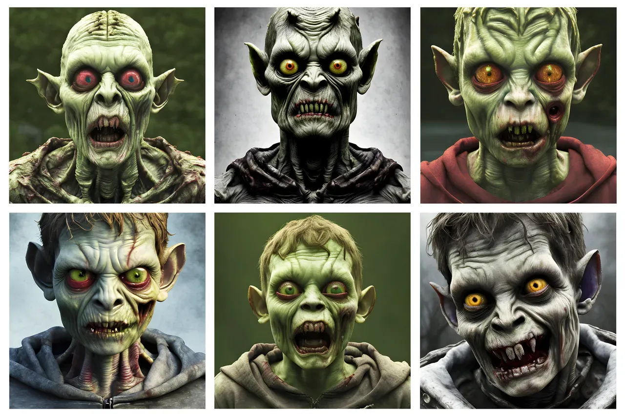 Zombie boy portraits looking scary with sharp teeth and evil eyes in a horror collage
