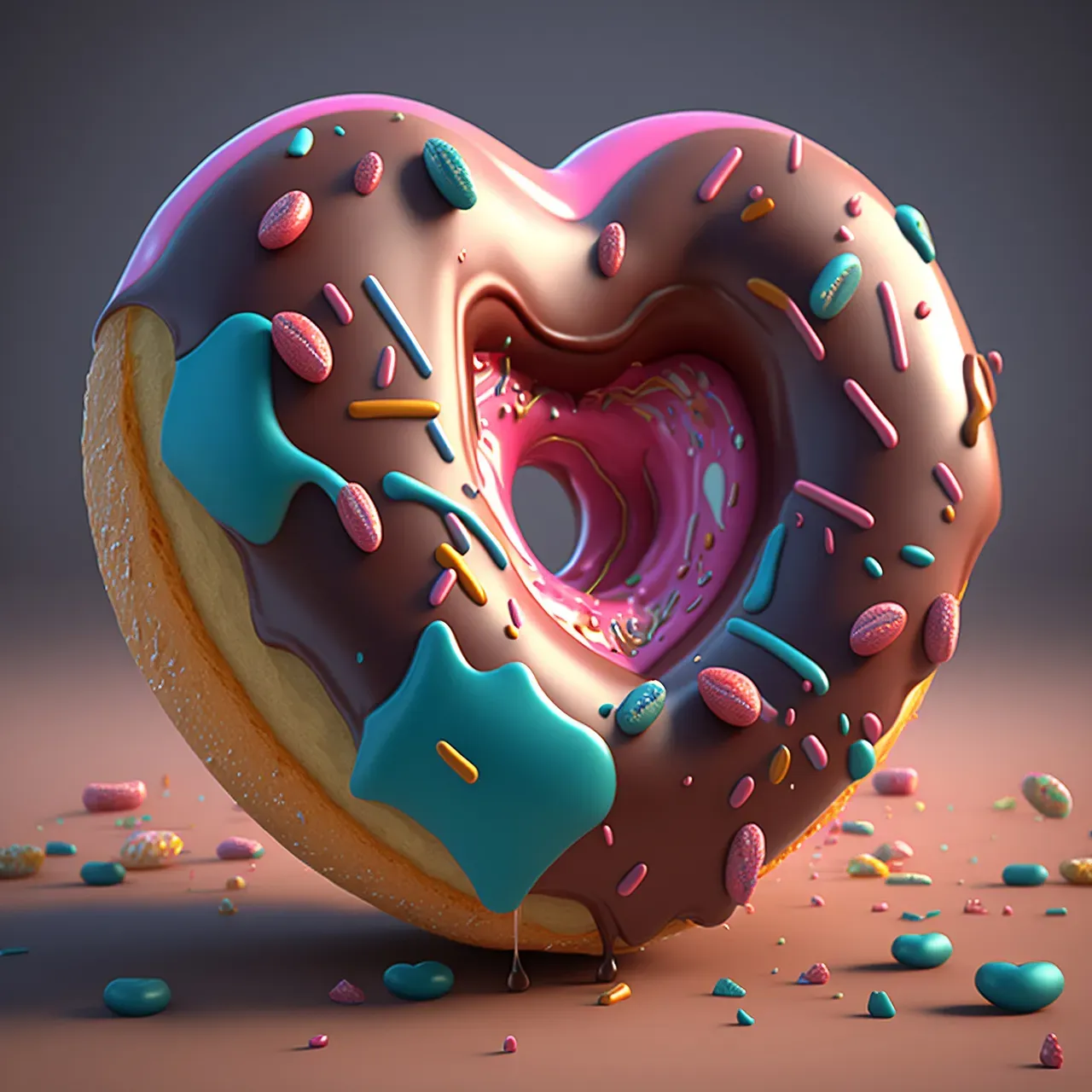 generative ai donut valentine february 14 unhealthy round baked pink holiday romance nubes sugar food sprinkle artwork sweet dessert candy colours illustration detailed three-dimensional digital render party february tasty delicious cookery chocolate snack breakfast fat cake promotion romantic passion lovely eatery shape ring glazed decoration biscuit homemade advertising celebration symbol copy space
