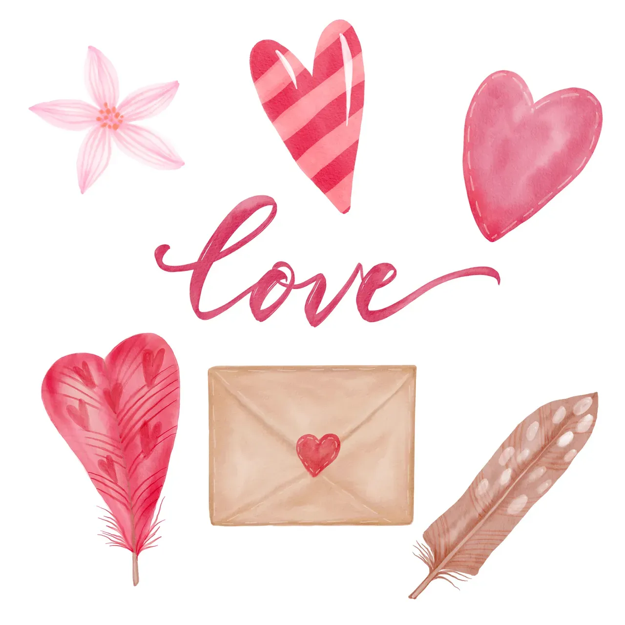 valentine design element valentines day hand drawn cut out message heart balloon feather watercolor love element illustration card wedding greeting design day pink romantic invitation art decoration gift cute romance happy isolated flower paper set drawing vintage floral drawn birthday letter ribbon candy beautiful sweet shape february paint envelope postcard rose creativity clip art lollipop