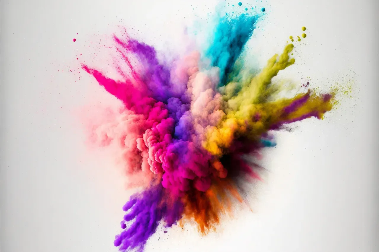 Multicolored powder splatted on white background, Freeze motion color powder exploding, Digital Art