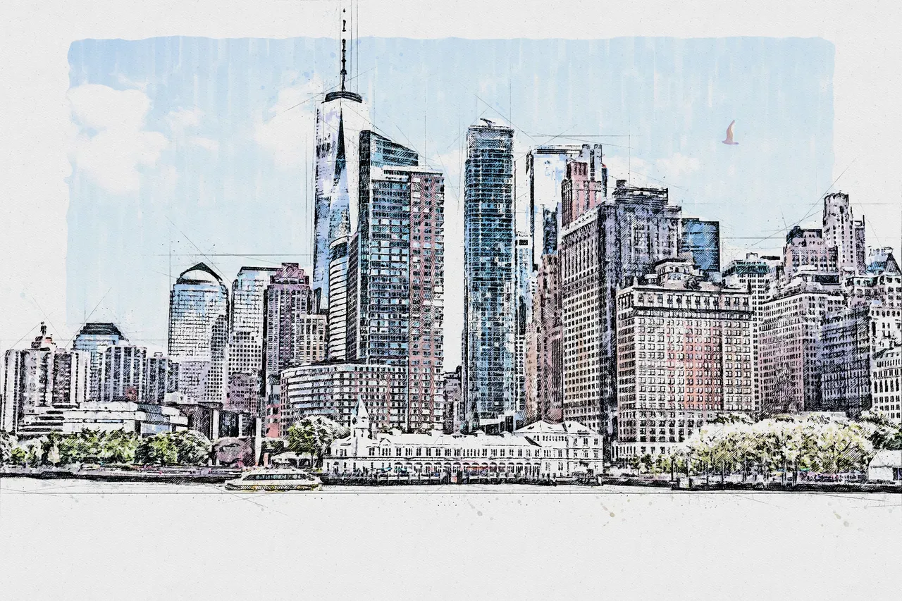 urban new skyscraper york american lower manhattan united view building ny sketch hand drawing pencil design digital art blueprint draft plan project style art illustration shape render new york city drawn paint us midtown panorama new york watercolour aquarelle watercolor manhattan architecture city skyline america cityscape landmark nyc river usa downtown