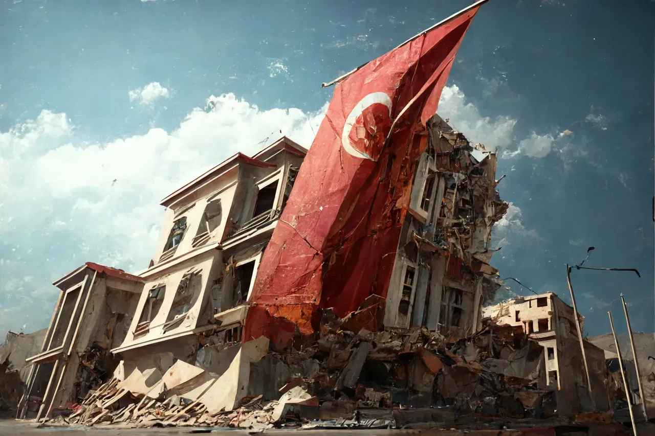 Illustration of the earthquake that hits Turkey, with collapsed building.