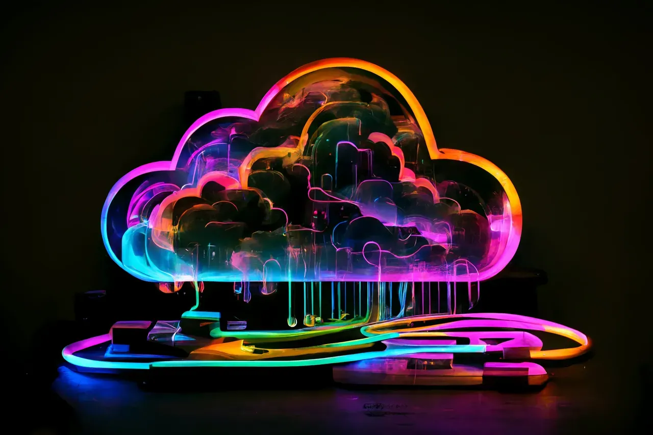 Illustration of cloud storage with 3D concept, and neon lighting