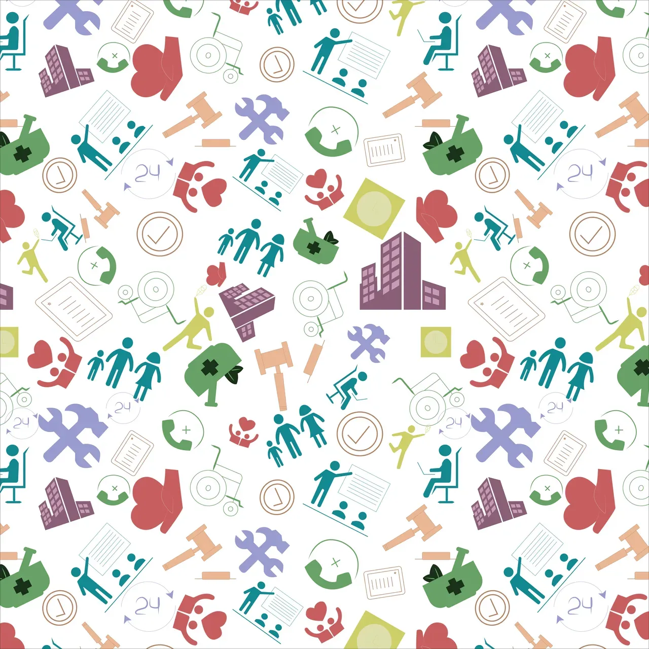 seamless pattern of colorful flat silhouette icon of heath, help care, social issue, human , NGO.