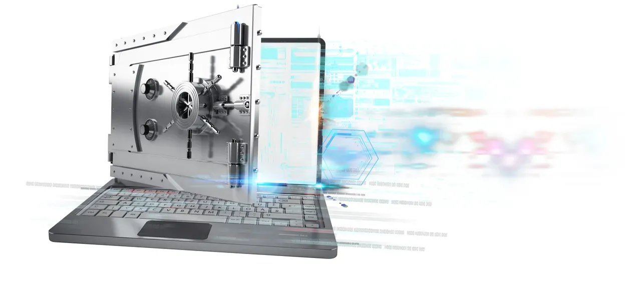 Safe on a laptop. concept of hacking and data security system. 3d rendering