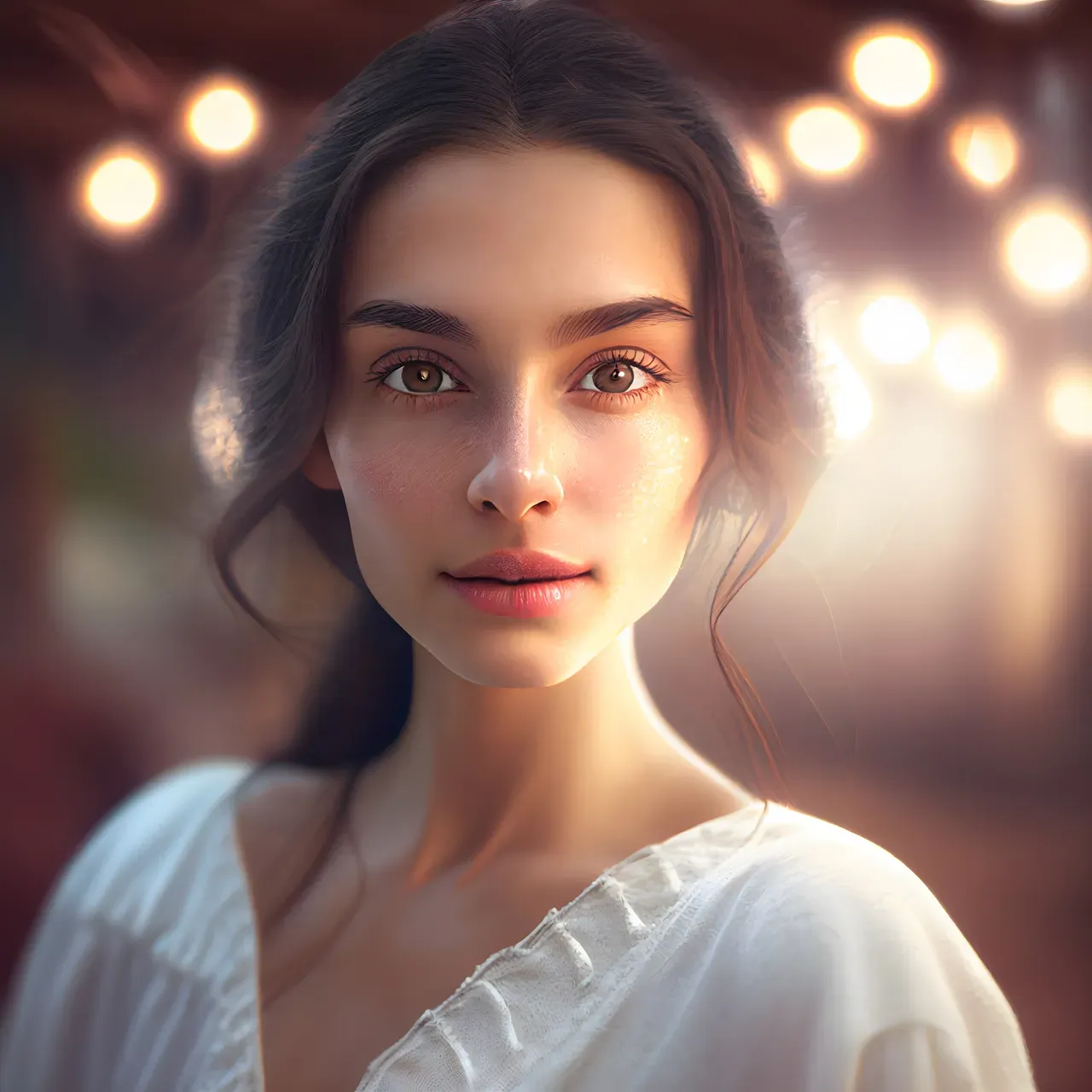 human portrait girl face beautiful woman female young person model caucasian soft focus background looking emotion light summer eye lady hairstyle bride wedding teenage close-up cute dreamy one person picture soft skin romantic youthful camera dress head love smiling sunlight long hair human face curly hair studio beautiful people selective focus boho fairy image innocence ai generative ai