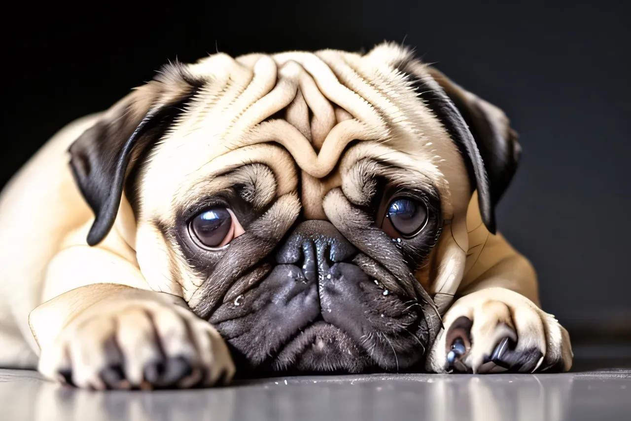 Cute Beautiful Sad Pug Dog Portrait Close Up. Ai Generative Illustration.