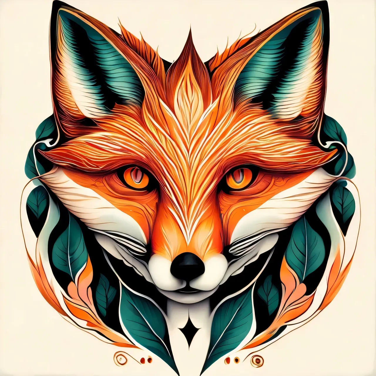 Fox Tatoo illustration Mystical Art. Generative Ai.