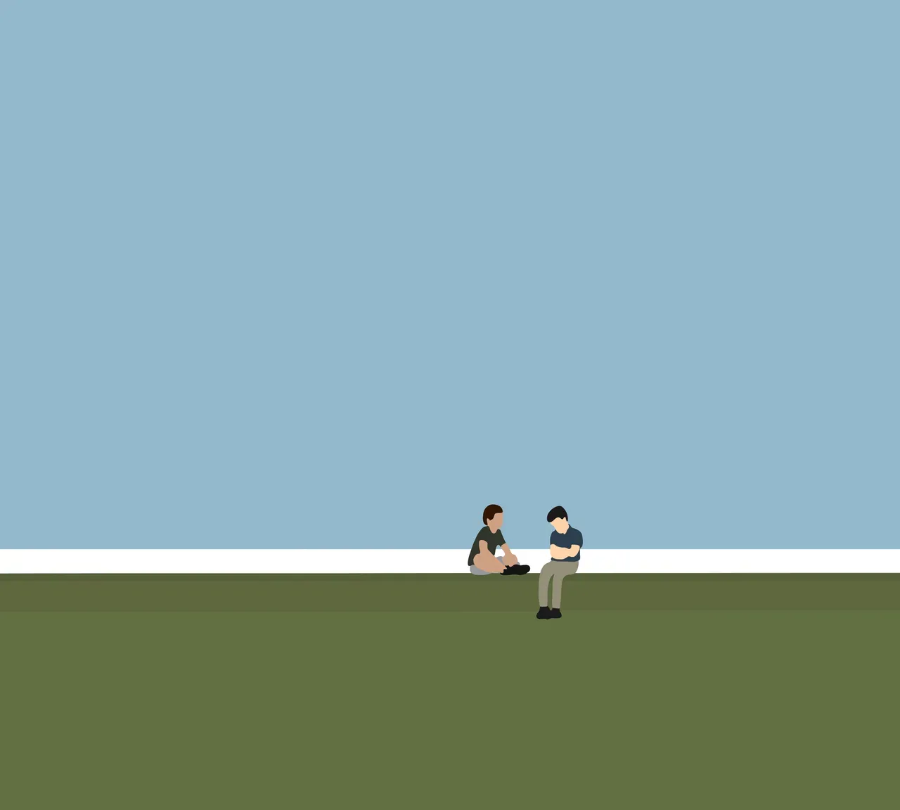 Two boys sitting and playing in public park. Trendy teenagers enjoying free time