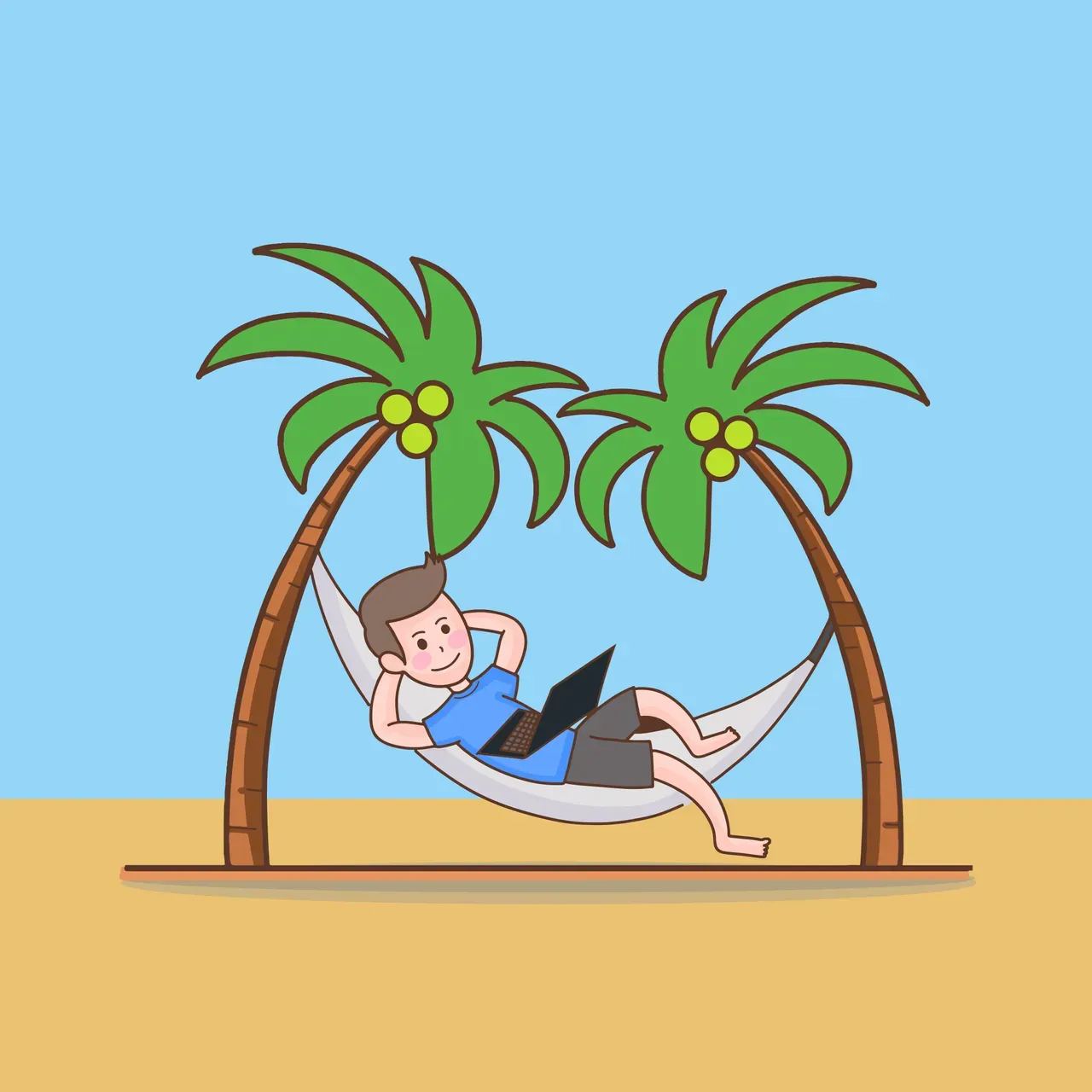 graphic programmer notebook internet job island business guy professional creative radiation rest freelance computer online seaside happy beach relax man vacation summer illustration tropical nature cartoon sea holiday ocean design person work worker character male sand tree relaxation palm boy workplace