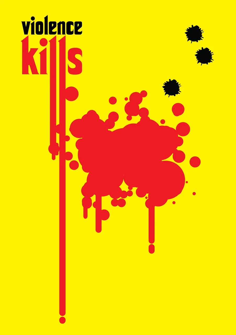 Violence kills, shots on a wall and blood spills over a yellow wall, with typography