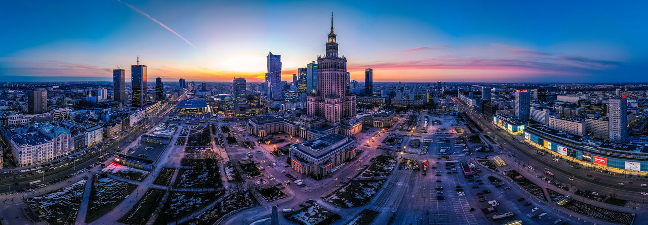 Aerial View Architecture Building Exterior Built Structure City Cityscape Eastern Europe Europe Futuristic Highway Illuminated Light Trail Modern Motion Night No People Office Building Exterior Outdoors Poland Road Sky Skyscraper Tall - High Transportation Warsaw — in Warsaw, Poland