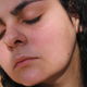 20-24 Years Black Hair Curly Hair Day Domestic Life Domestic Room Home Interior Indoors Leisure Activity Lifestyles Living Room Medium-Length Hair One Person Real People Sitting Sofa Wall Young Adult Young Women