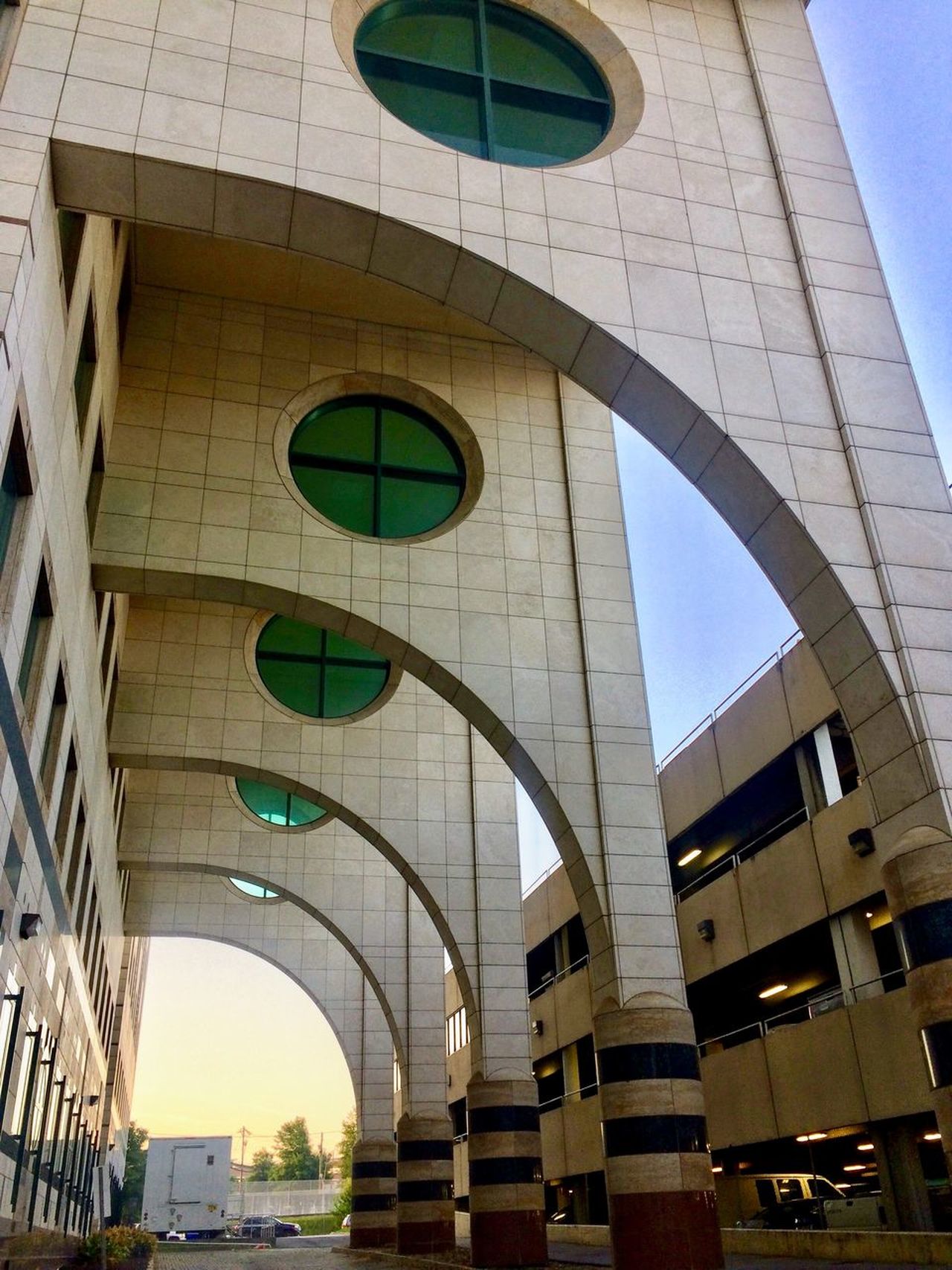 LOW ANGLE VIEW OF MODERN BUILDING AGAINST SKY IN CITY